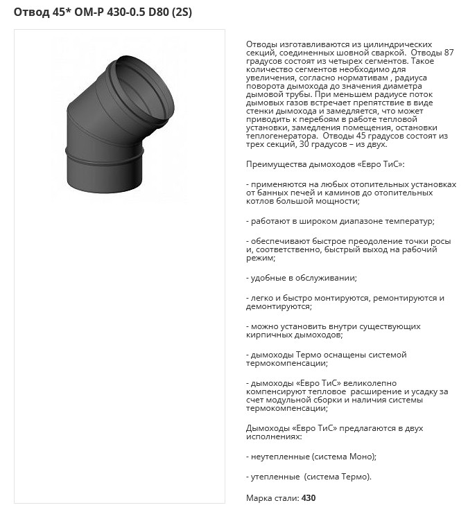 | Отвод моно 45 ОМ-Р 316 0,5 мм | 658 | 766 |