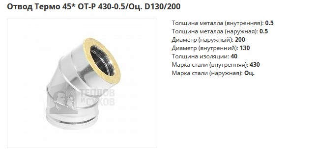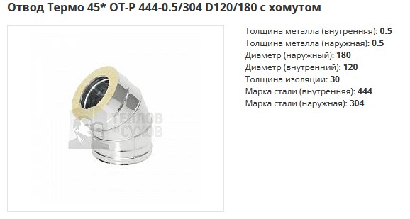 | Отвод Термо 45 ОТ-Р 304 0,5 мм / 304 | 1 644