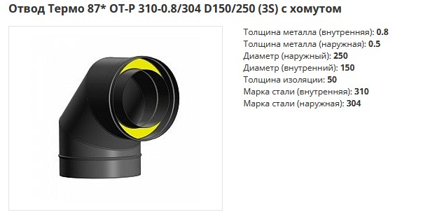| Отвод Термо 87° OT-Р с хомутом 310 0,8 мм / 304 | - | - | 11 527 | - | - |