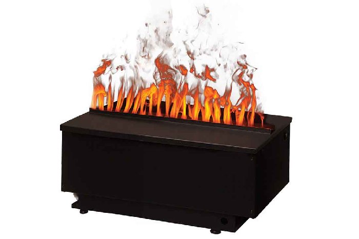 В очаге Cassette 500 не используются дрова или какое-либо другое декоративное топливо. Вы можете добавить декор по своему вкусу (камни, кристаллы, угли, дрова) или использовать его в первоначальном виде, это смотрится очень оригинально и стильно. Благодаря инновационному техническому решению камин работает на фильтрованной воде и может быть подключен напрямую к действующему водопроводу, что позволяет использовать камин длительное время без дозаправки. Пламя в камине – это обычный пар, подсвеченный галогеновыми лампами. Камин пожаробезопасен, не обжигает и увлажняет воздух в помещении. Для его установки не требуется установка дымохода или вытяжки, камин не выделяет вредных примесей и продуктов горения, а после использования не оставляет копоти и золы.