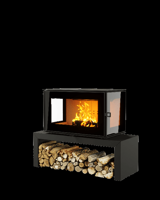 Боковые стенки печи-камина КУБ 3С 800 имеют двойное остекление и обеспечивают панорамный обзор на пламя.