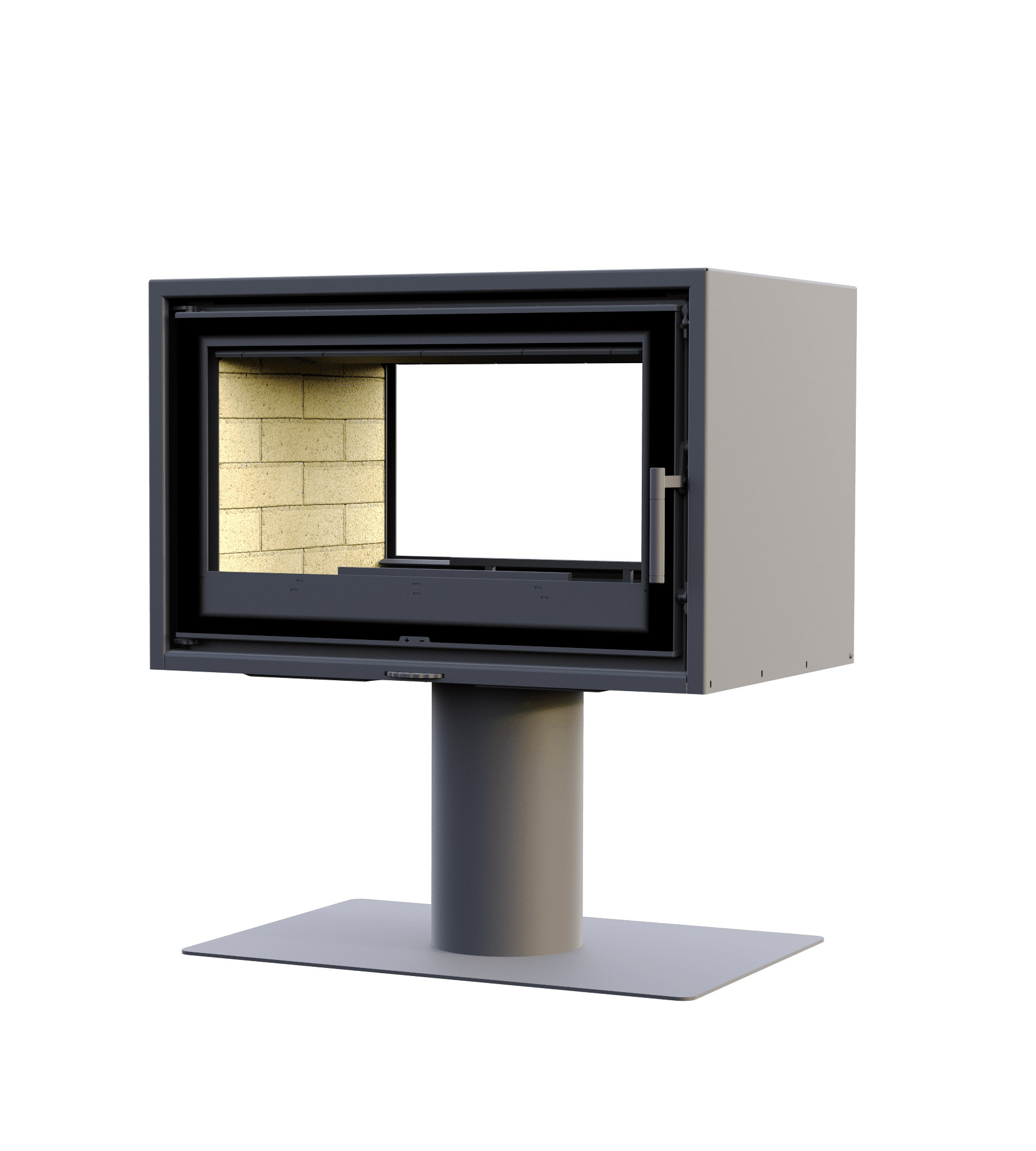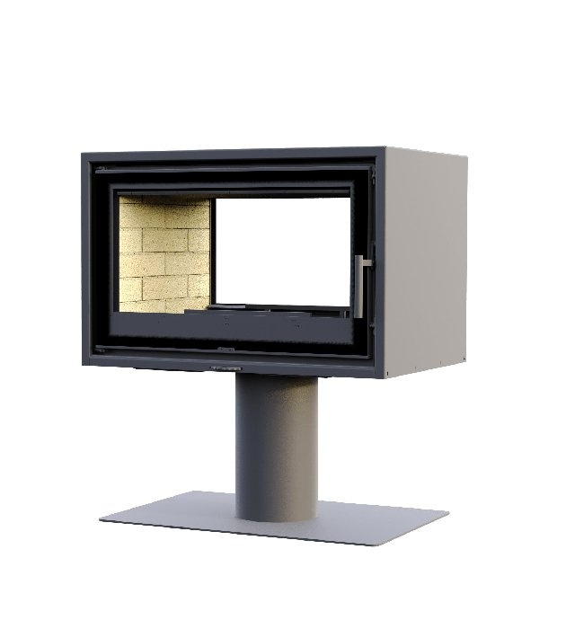 Дверца - прямое стекло с боковым открыванием. Шелкография завершает обрамление очага, гармонируя с внутренним убранством топочной части. Номинальная теплопроизводительность устройства 7 кВт. Оптимальный объём зала 175 м3. Вы будете чувствовать себя комфортно, даже если очаг горит круглосуточно.