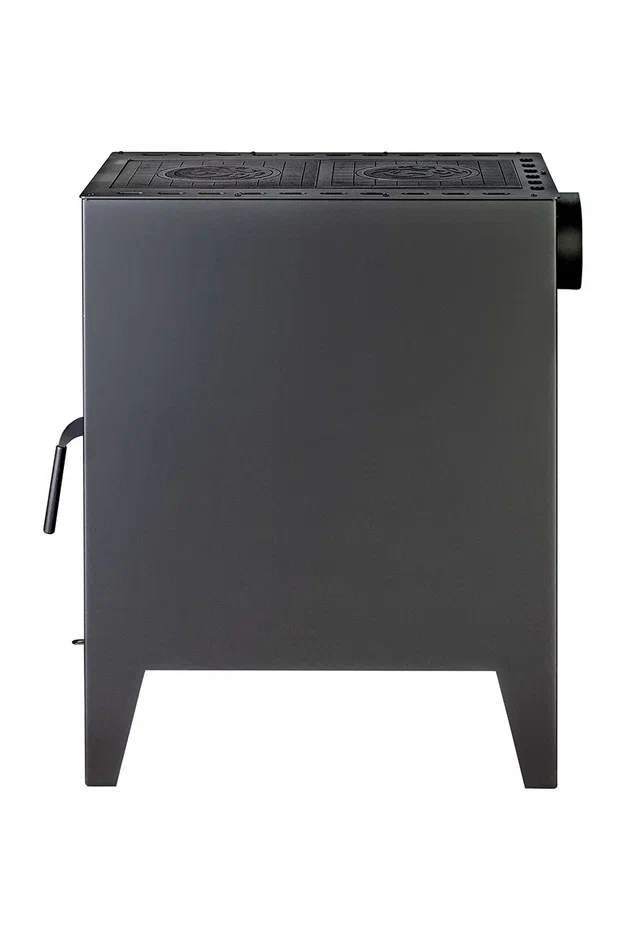 Укомплектована чугунными плитами для приготовления и разогрева пищи. Возможно установить один либо два теплообменника (артикул ТО05) для подключения к системе отопления дома.
