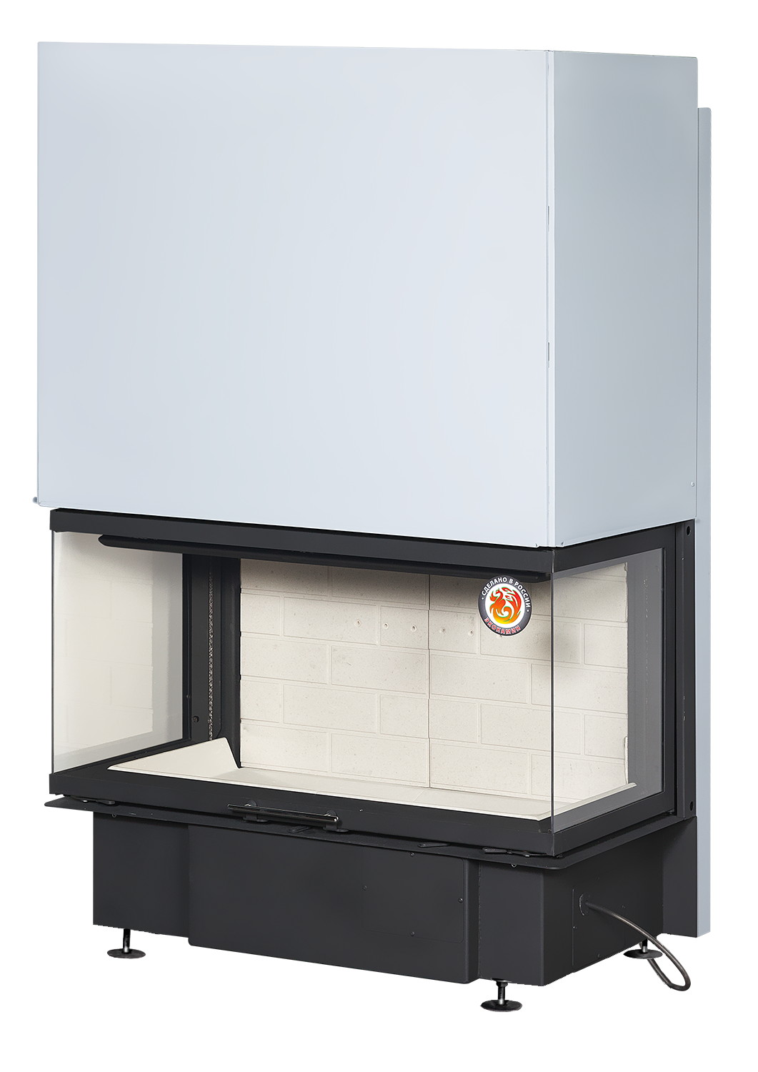 Топки ДЕЛЬТА это сплав наших знаний о современных Европейских тенденциях в области создания каминных топок и требований отечественного покупателя к удобству эксплуатации, внешнему виду и надежности камина. Наши топки принесут в ваш дом атмосферу комфорта, и отлично впишутся в любой интерьер. Мы производим каминные топки из высококачественной котельной стали и наносим термостойкое лакокрасочное покрытие с антикоррозийными свойствами. Топки серии ДЕЛЬТА имеют следующие конструктивные особенности: Топочная камера футерована современным материалом, литьевым шамотом бежевого или черного цвета (по желанию покупателя) и надежно защищает металлические детали корпуса топки от перегрева. Жаропочное стекло из Японии способно выдерживать температуру до 750 С. Система тепловой разводки имеет два встроенных патрубка диаметром 125 мм для подключения системы распределения теплого воздуха в смежные помещения и позволяет увеличить площадь обогреваемых помещений. Система забора воздуха извне, имеет два встроенных патрубка диаметром 125 мм для подключения забора воздуха на горение из соседнего помещения, улицы, подвала, и повышает надежность работы топки. Система очистки стекла эффективно очищает жаропрочное стекло и позволяет любоваться красотой огня. Система вторичного дожега увеличивает КПД топки и позволяет экономить дрова. Встроенная шиберная заслонка позволяет увеличивать/уменьшать сечение дымового канала и регулирует мощность топки. Ребра жесткости по всему корпусу топки и встроенные в дымосборник тепловые каналы позволяют снимать больше тепла и отдавать его в помещение путем конвекции. Высокий дымосборник и пламярассекатель не позволяют дымовым газам попадать в помещение при открывании дверцы. Бесшумная и надежная тросовая система с противовесом и жаропрочными подшипниками, позволяет открывать дверцу топки вверх и производить закладку дров в топочную камеру. Для оптимизации процессов горения все регулировки подачи воздуха на систему первичное горение, систему очистки стекла и встроенную шиберную заслонку производятся специальным ключом «ХОЛОДНАЯ РУКА». Под чугунной колосниковой решеткой в днище топки, находится большой зольный ящик, который удобно вынимается. Устойчивые, регулируемые по высоте ножки, позволяют при монтаже установить топку по уровню.