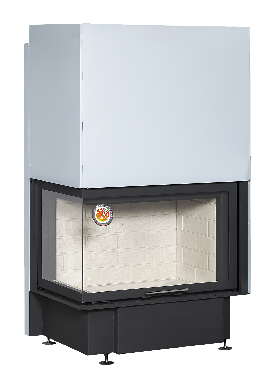 Топки ДЕЛЬТА это сплав наших знаний о современных Европейских тенденциях в области создания каминных топок и требований отечественного покупателя к удобству эксплуатации, внешнему виду и надежности камина. Наши топки принесут в ваш дом атмосферу комфорта, и отлично впишутся в любой интерьер. Мы производим каминные топки из высококачественной котельной стали и наносим термостойкое лакокрасочное покрытие с антикоррозийными свойствами. Топки серии ДЕЛЬТА имеют следующие конструктивные особенности: Топочная камера футерована современным материалом, литьевым шамотом бежевого или черного цвета (по желанию покупателя) и надежно защищает металлические детали корпуса топки от перегрева. Жаропочное стекло из Японии способно выдерживать температуру до 750 С. Система тепловой разводки имеет два встроенных патрубка диаметром 125 мм для подключения системы распределения теплого воздуха в смежные помещения и позволяет увеличить площадь обогреваемых помещений. Система забора воздуха извне, имеет два встроенных патрубка диаметром 125 мм для подключения забора воздуха на горение из соседнего помещения, улицы, подвала, и повышает надежность работы топки. Система очистки стекла эффективно очищает жаропрочное стекло и позволяет любоваться красотой огня. Система вторичного дожега увеличивает КПД топки и позволяет экономить дрова. Встроенная шиберная заслонка позволяет увеличивать/уменьшать сечение дымового канала и регулирует мощность топки. Ребра жесткости по всему корпусу топки и встроенные в дымосборник тепловые каналы позволяют снимать больше тепла и отдавать его в помещение путем конвекции. Высокий дымосборник и пламярассекатель не позволяют дымовым газам попадать в помещение при открывании дверцы. Бесшумная и надежная тросовая система с противовесом и жаропрочными подшипниками, позволяет открывать дверцу топки вверх и производить закладку дров в топочную камеру. Для оптимизации процессов горения все регулировки подачи воздуха на систему первичное горение, систему очистки стекла и встроенную шиберную заслонку производятся специальным ключом «ХОЛОДНАЯ РУКА». Под чугунной колосниковой решеткой в днище топки, находится большой зольный ящик, который удобно вынимается. Устойчивые, регулируемые по высоте ножки, позволяют при монтаже установить топку по уровню.