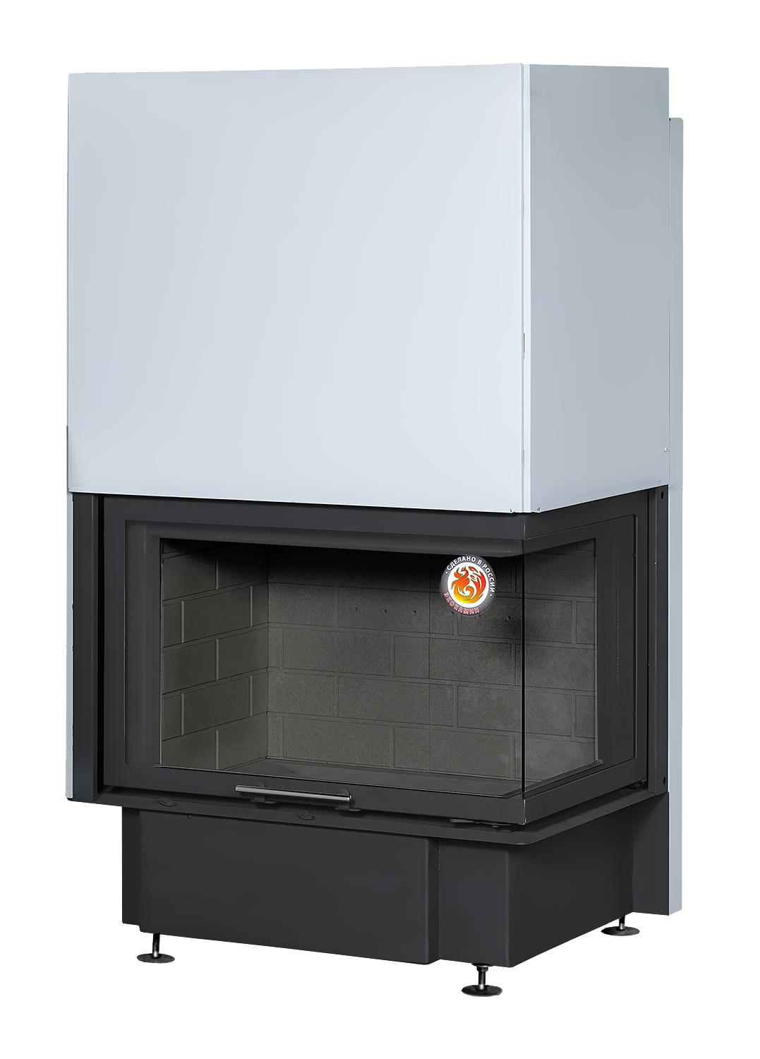 Топки ДЕЛЬТА это сплав наших знаний о современных Европейских тенденциях в области создания каминных топок и требований отечественного покупателя к удобству эксплуатации, внешнему виду и надежности камина. Наши топки принесут в ваш дом атмосферу комфорта, и отлично впишутся в любой интерьер. Мы производим каминные топки из высококачественной котельной стали и наносим термостойкое лакокрасочное покрытие с антикоррозийными свойствами. Топки серии ДЕЛЬТА имеют следующие конструктивные особенности: Топочная камера футерована современным материалом, литьевым шамотом бежевого или черного цвета (по желанию покупателя) и надежно защищает металлические детали корпуса топки от перегрева. Жаропочное стекло из Японии способно выдерживать температуру до 750 С. Система тепловой разводки имеет два встроенных патрубка диаметром 125 мм для подключения системы распределения теплого воздуха в смежные помещения и позволяет увеличить площадь обогреваемых помещений. Система забора воздуха извне, имеет два встроенных патрубка диаметром 125 мм для подключения забора воздуха на горение из соседнего помещения, улицы, подвала, и повышает надежность работы топки. Система очистки стекла эффективно очищает жаропрочное стекло и позволяет любоваться красотой огня. Система вторичного дожега увеличивает КПД топки и позволяет экономить дрова. Встроенная шиберная заслонка позволяет увеличивать/уменьшать сечение дымового канала и регулирует мощность топки. Ребра жесткости по всему корпусу топки и встроенные в дымосборник тепловые каналы позволяют снимать больше тепла и отдавать его в помещение путем конвекции. Высокий дымосборник и пламярассекатель не позволяют дымовым газам попадать в помещение при открывании дверцы. Бесшумная и надежная тросовая система с противовесом и жаропрочными подшипниками, позволяет открывать дверцу топки вверх и производить закладку дров в топочную камеру. Для оптимизации процессов горения все регулировки подачи воздуха на систему первичное горение, систему очистки стекла и встроенную шиберную заслонку производятся специальным ключом «ХОЛОДНАЯ РУКА». Под чугунной колосниковой решеткой в днище топки, находится большой зольный ящик, который удобно вынимается. Устойчивые, регулируемые по высоте ножки, позволяют при монтаже установить топку по уровню.